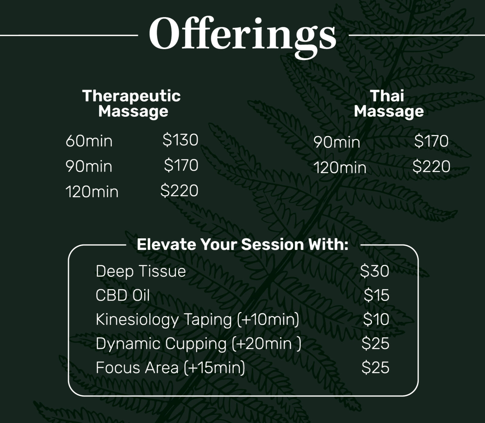 Are pain and exhaustion limiting your potential? Recovery isn’t just important—it’s essential to your performance.Using a powerful fusion of Thai and Western techniques, we’ll free your muscles from tension and bring your nervous system into balance.Each session leaves you feeling clear, relaxed, and one step ahead of pain.